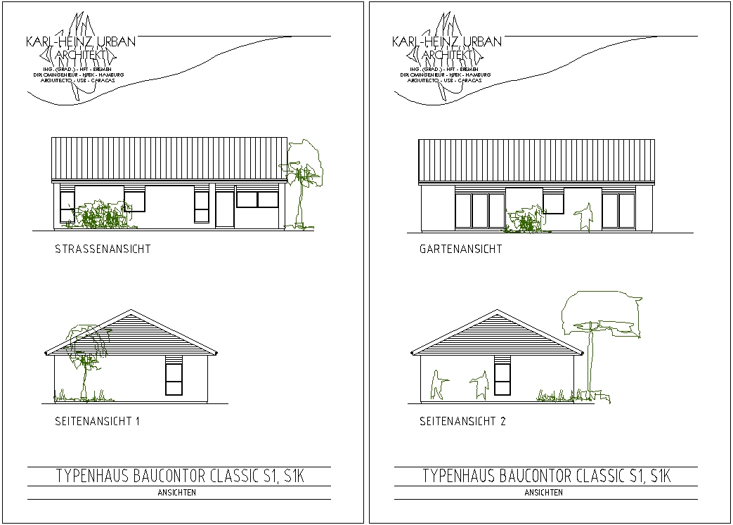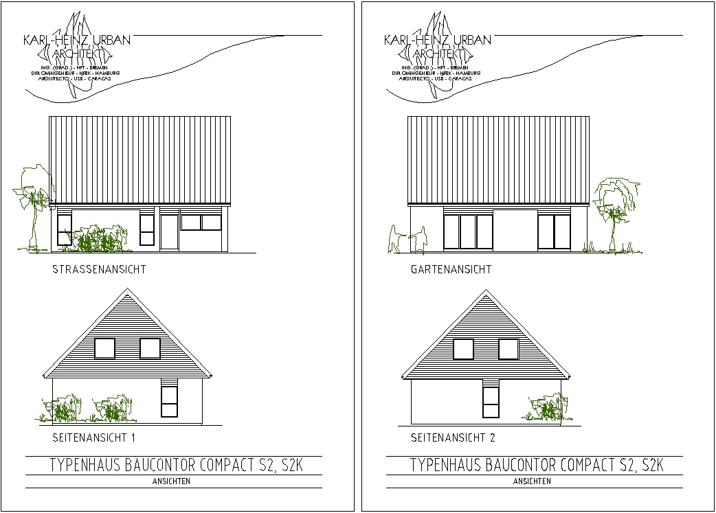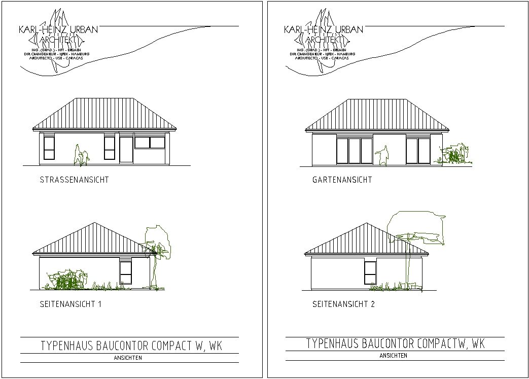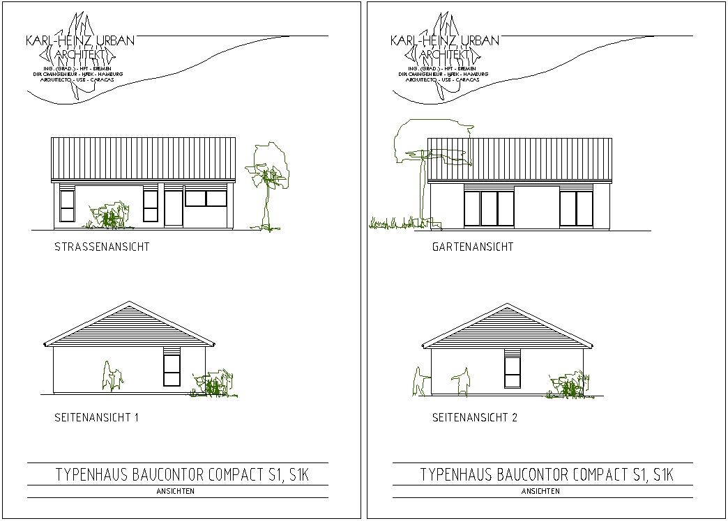 Die Modellreihe "Baucontor" wird hier vorgestellt, bewährt seit 1976 (2 Häuser oben).