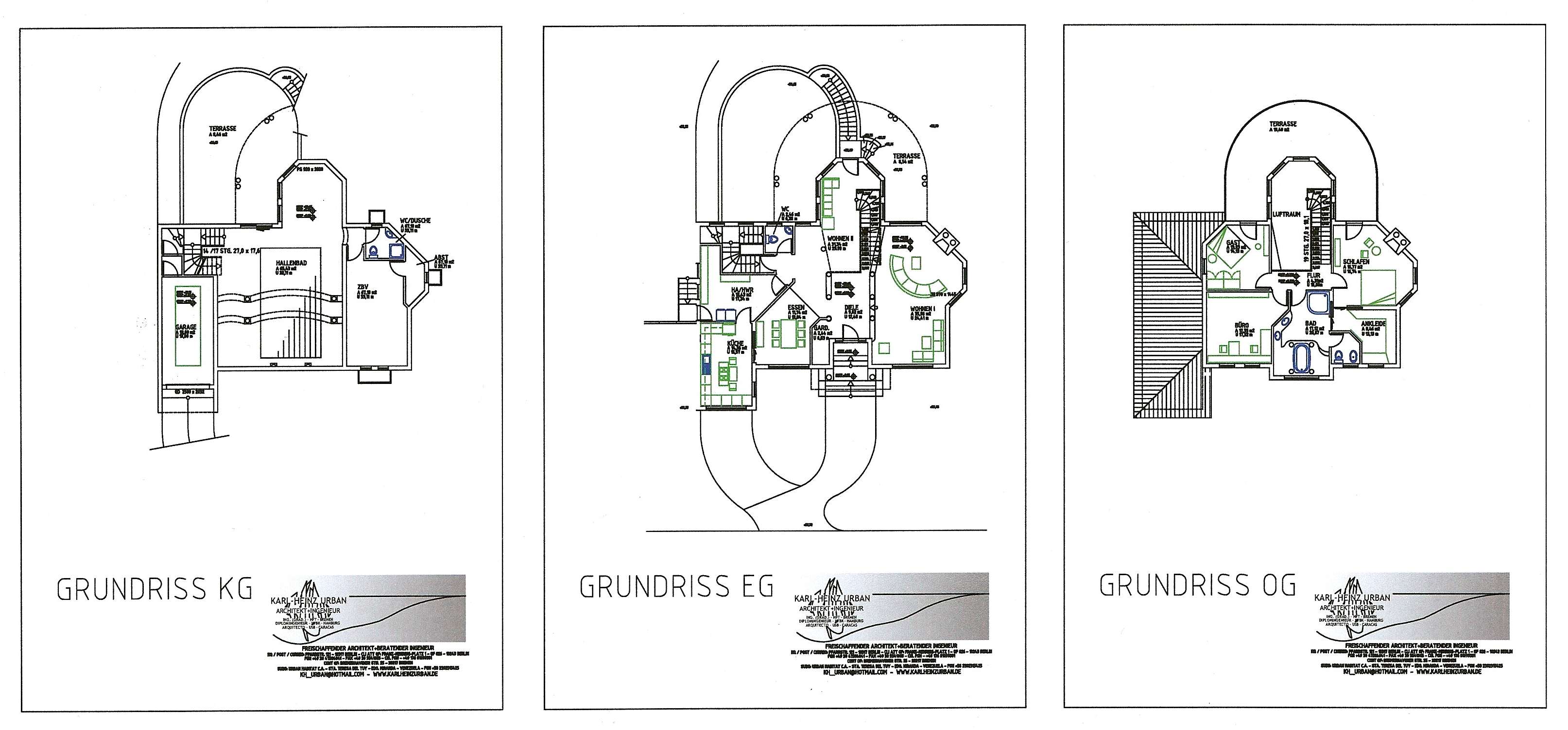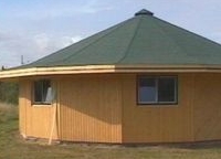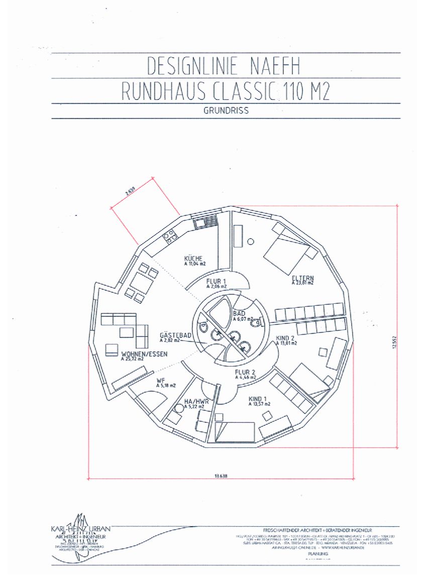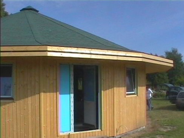 Zuerst eine interessante Rundhaus-Variante, darunter dann Beispiel-Fotos, danach Grundrisse und Ansichten