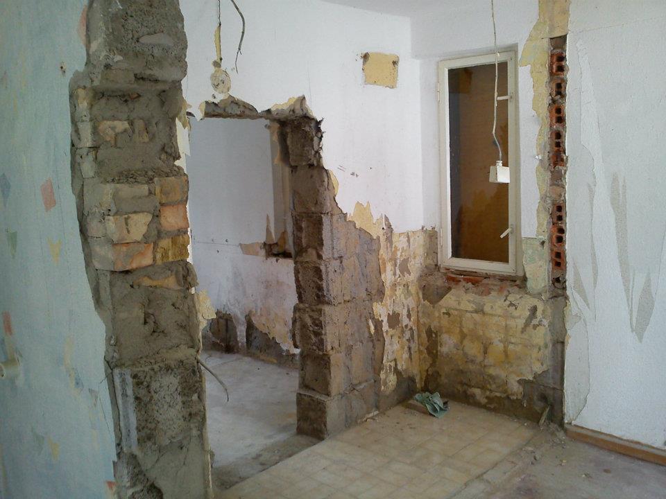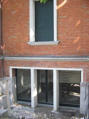Se muestran 3 momentos, de la izquierda a la derecha: Situación encontrada en julio del 2004, abertura para la puerta de terraza en octubre del 2004. La terminación de las obras a partir de ahí entro en manos de colegas, ya que el contrato de diseño estructurales y asistencia a los planos arcquitectónicos, así como de supervisión de ejecución de estructura terminó. La última foto fué tomada ahora, cuando las obras casi son terminadas, y muestra la inserción apropiada de un nuevo elemento constructivo y arquitectónico en una edificación del los años sesenta del siglo 19.