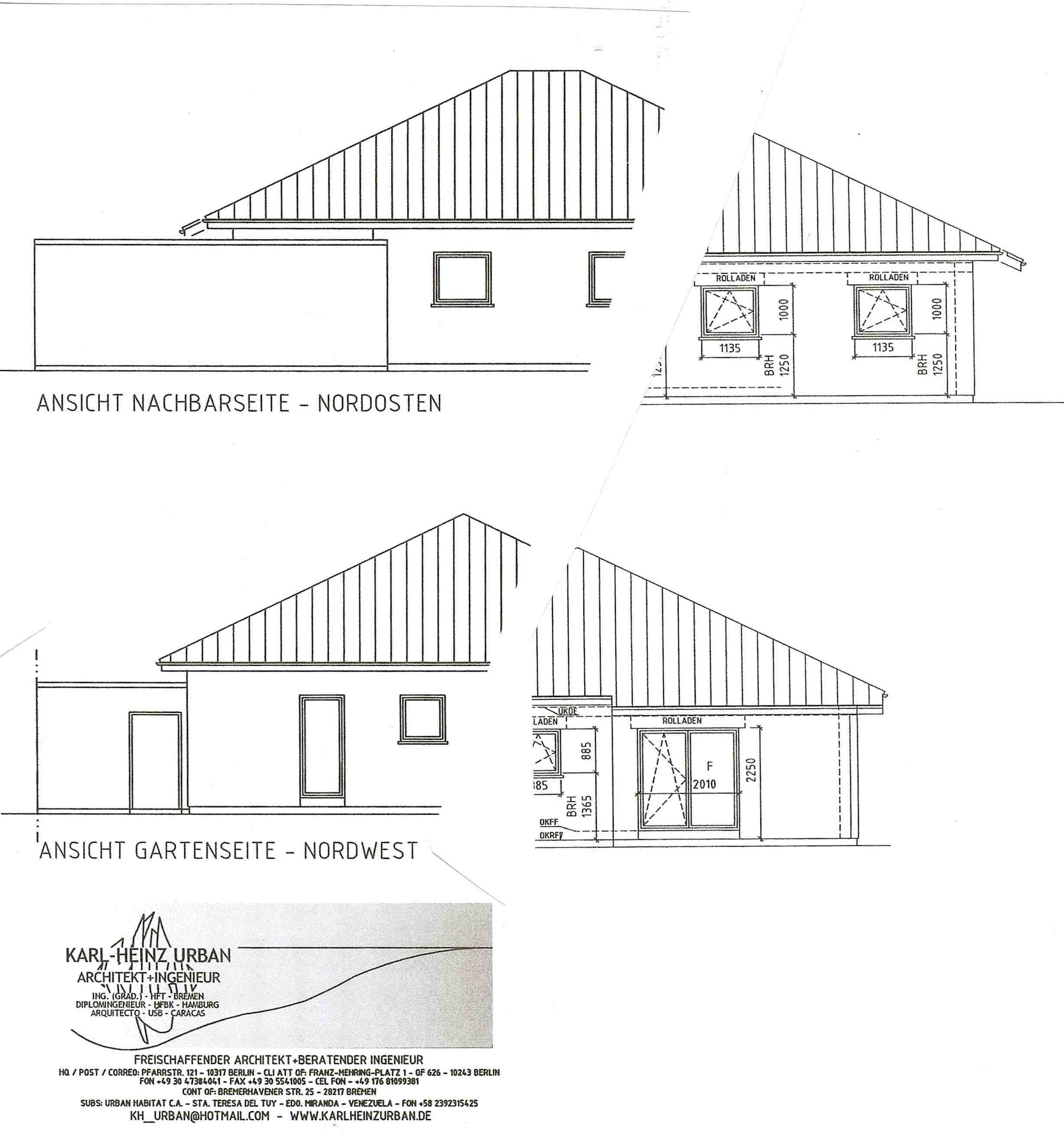 NOVIEMBRE DEL 2003 Casas para personas de edad y con restricciones físicas A partir del mes de diciembre, toda casa unifamiliar se diseñará y construirá a solicitud también con detalles para personas de edad y con restricciones físicas (Pisos sin escalones hasta las terrazas, puertas >1,00 m, duchas a nivel del piso del baño etc.). En relación a los costos revise la página "Urban baut". JULIO DEL 2003 A partir del 1ro de julio, se ha concluido la inscripción como Ingeniero Civil en el Colegio de Ingenieros de Berlin (Baukammer Berlin). De este modo se pueden ofrecer más y mejores servicios profesionales al cliente.