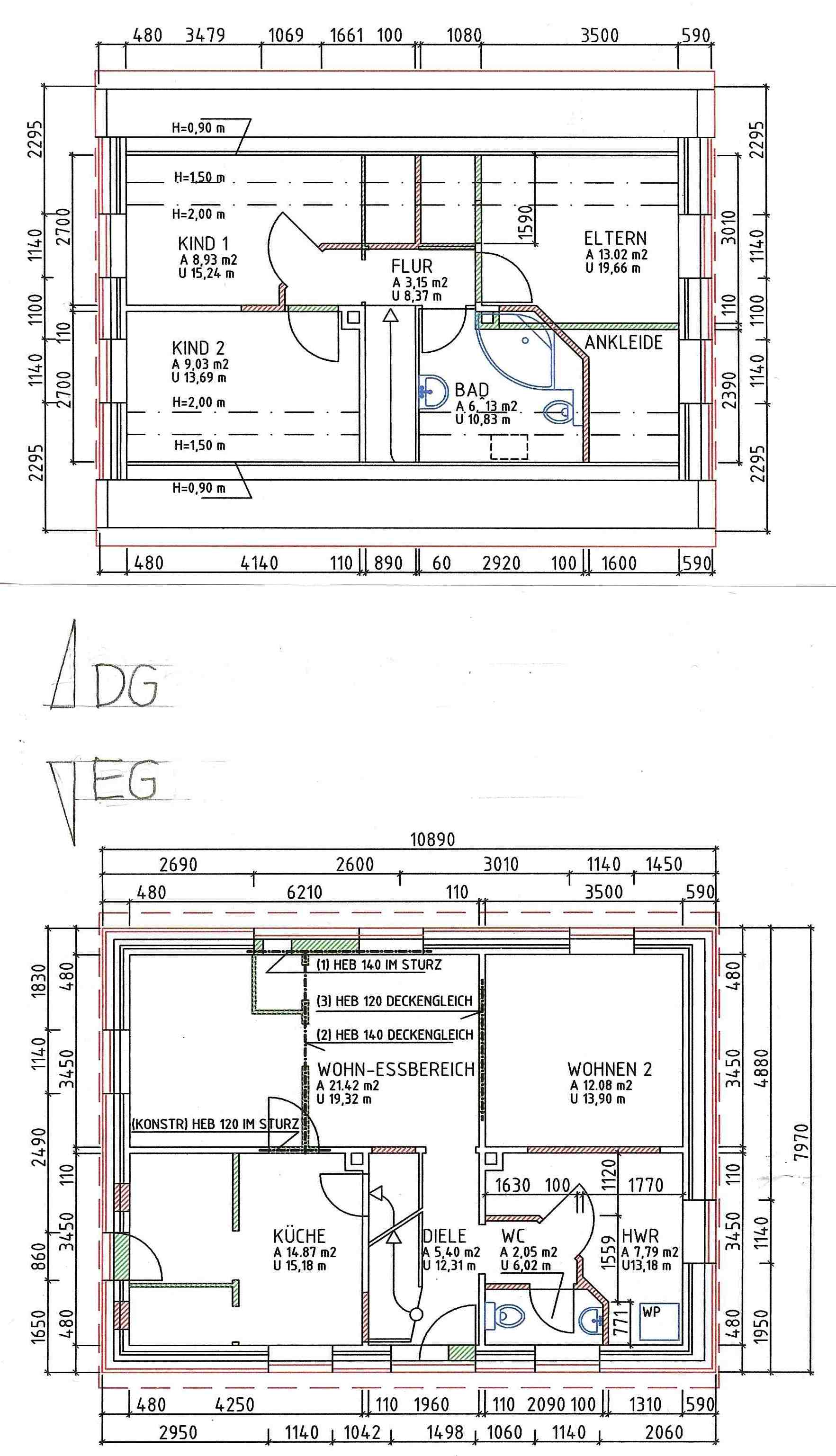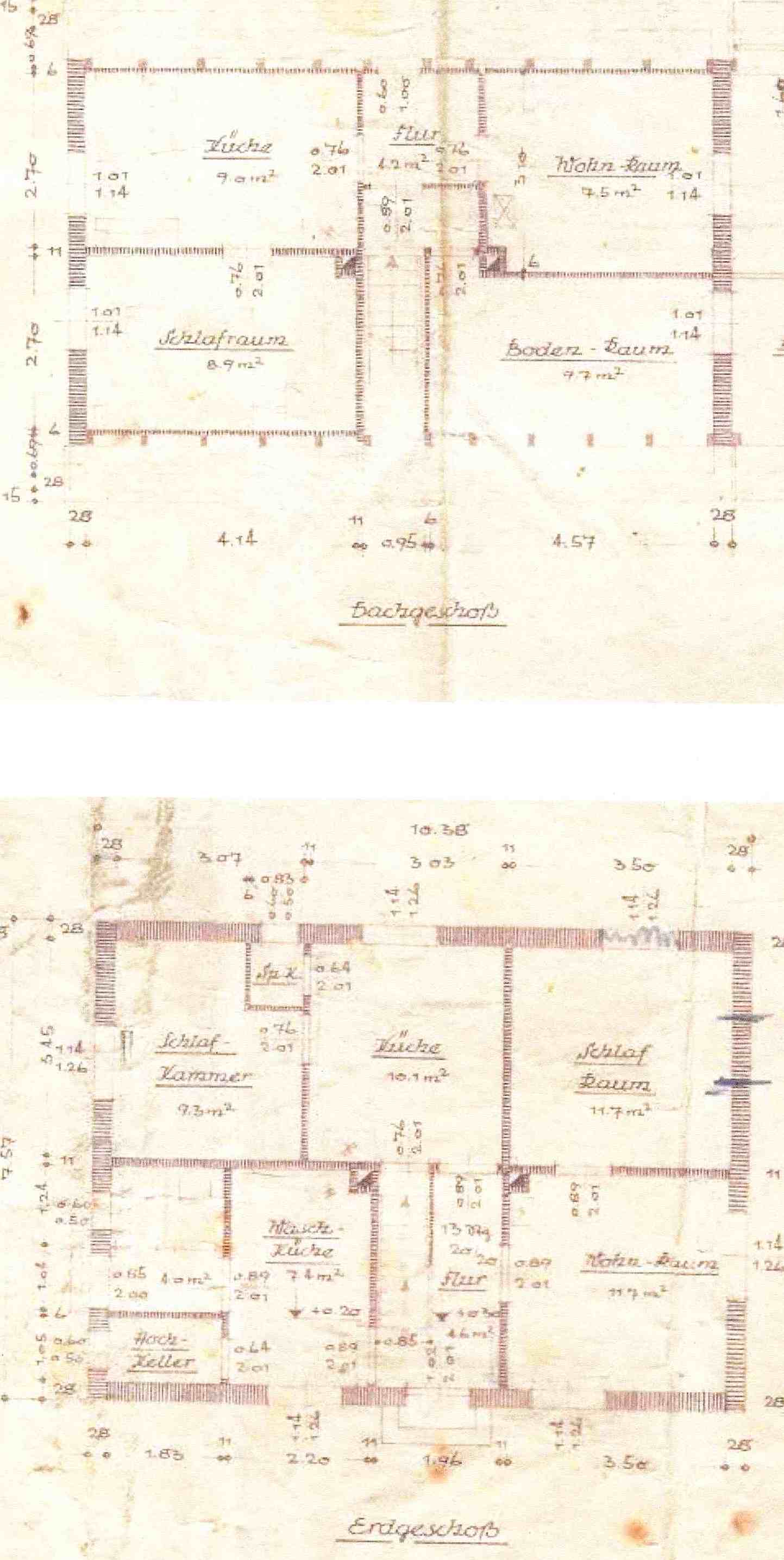![]() La planeada reconstrucción hacia una casa confortable, funcional y energeticamente de alta calidad: Plantas y un esbozo a mano